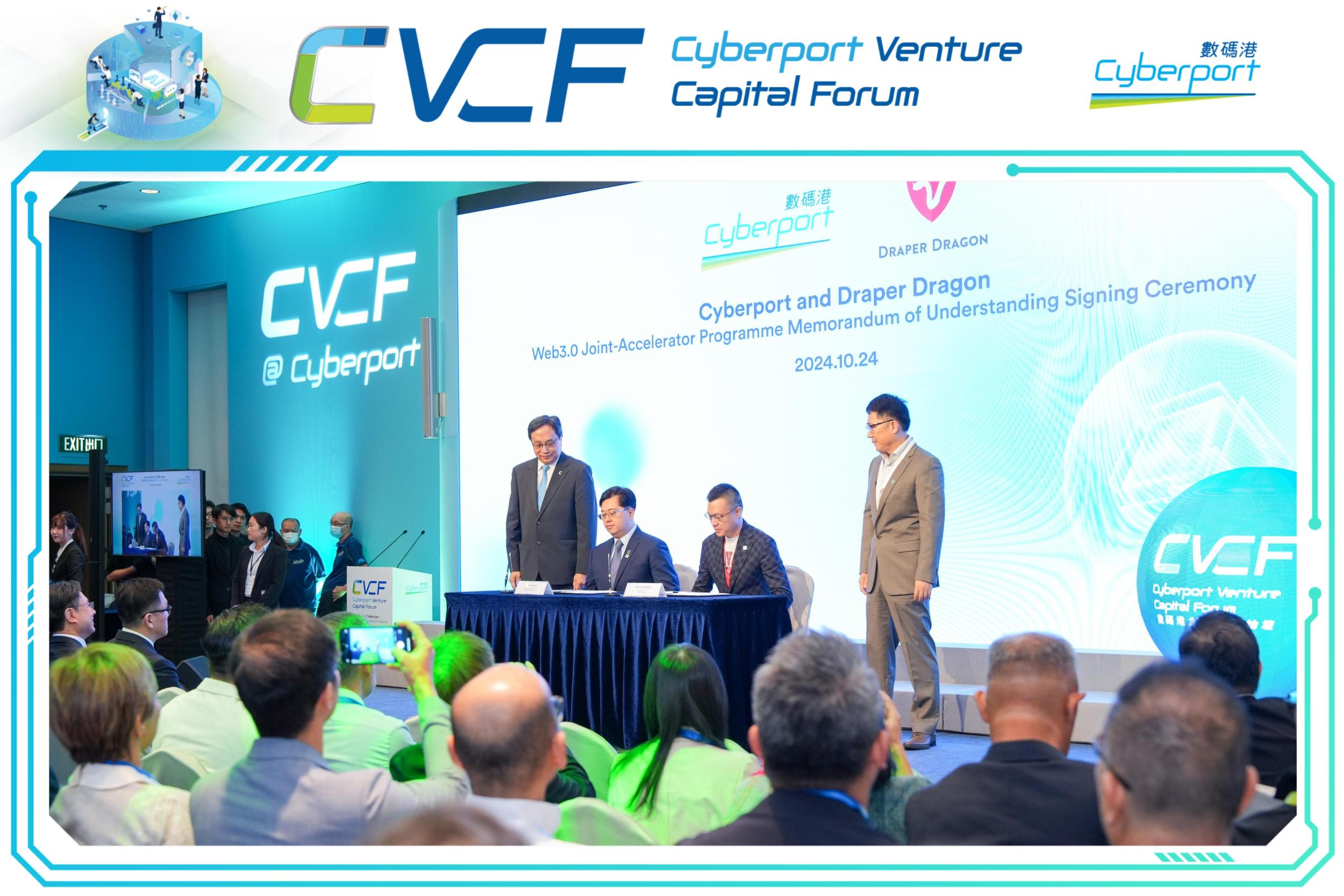 Hong Kong, 24 October 2024 – The Cyberport Venture Capital Forum 2024, a premier annual event in the global venture capital scene organised by Cyberport, was inaugurated today. The two-day event, themed "Innovation Challenger: Building New Venture Visions", brings together over 90 globally influential venture experts, entrepreneurial visionaries and innovative thinkers. They explore the future of innovation and entrepreneurship from fresh perspectives and delve into how emerging technologies such as Web3.0 and artificial intelligence (AI) can help companies and investors breakthrough in the rapidly evolving venture capital market, creating new opportunities. Meanwhile, Cyberport also celebrated the 7th anniversary of Cyberport Investors Network establishment, and Cyberport start-ups’ fundraising achievements. During the event, Professor Sun Dong, Secretary for Innovation, Technology and Industry of the HKSAR Government, delivered the opening remarks; while Simon Chan, Chairman of Cyberport, presented the welcoming address. Hendrick Sin, Chairman of the Cyberport Investors Network (CIN) Steering Group, Co-Founder & Vice Chairman of CMGE Technology Group Limited, and Founding Partner of China Prosperity Capital, reviewed the impressive journey and achievements of CIN over the past seven years. Together with other guests, they officiated the opening ceremony, marking the official start of this eagerly awaited global forum.